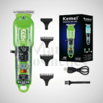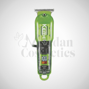 The Kemei KM-1133 is a sleek, modern hair clipper designed with a transparent body and LCD display, combining both style and utility for cutting hair at home or in professional settings.