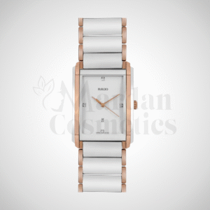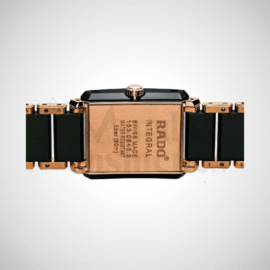 The RADO Integral R20194162 is a refined ladies’ timepiece combining high-tech ceramic and stainless steel construction with a sleek rectangular case. It features a black dial with minimalist styling, a reliable Swiss quartz movement, and a water resistance suitable for daily wear. Elegant, durable, and made to complement modern attire.